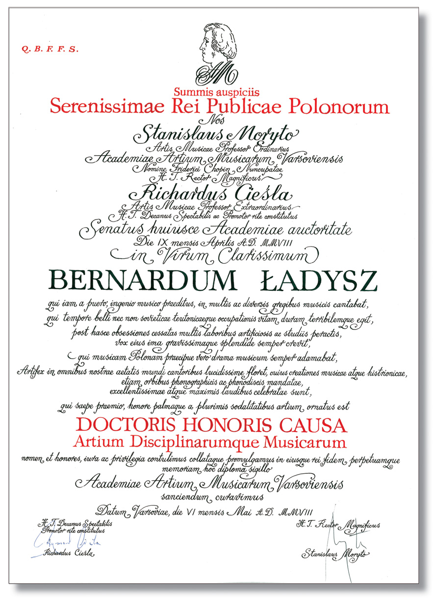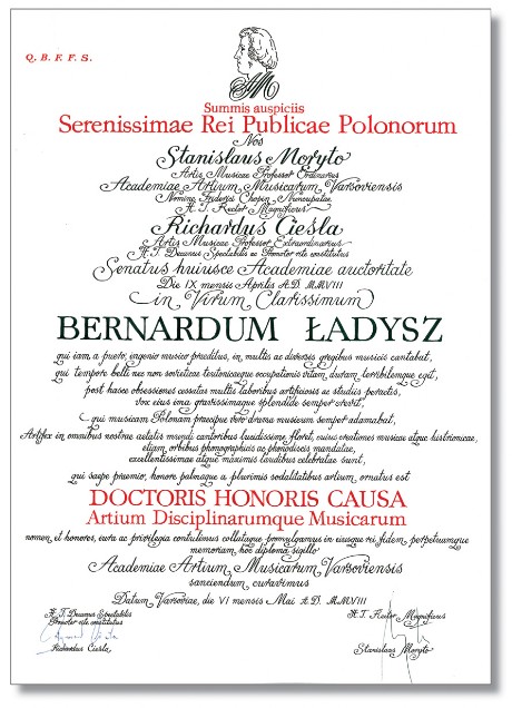 zasługi dla kultury muzycznej, składa hołd Maestro Bernardowi Ładyszowi i